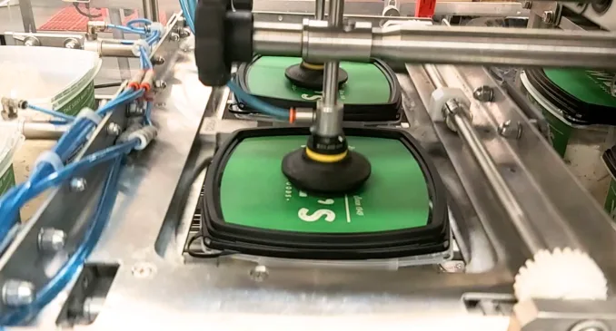 Our cup sealing line model PL500 or PL500PC need to be installed on an indexing conveyor.  Their main characteristics are: